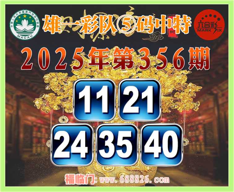 356期: ⌚『雄一彩队』⑤码中特⌚【11.21.24.35.40】开:24