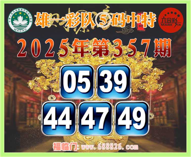 357期: ⌚『雄一彩队』⑤码中特⌚【05.39.44.47.49】开:49