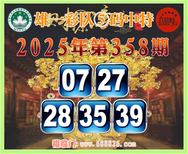 358期: ⌚『雄一彩队』⑤码中特⌚【07.27.28.35.39】开:07