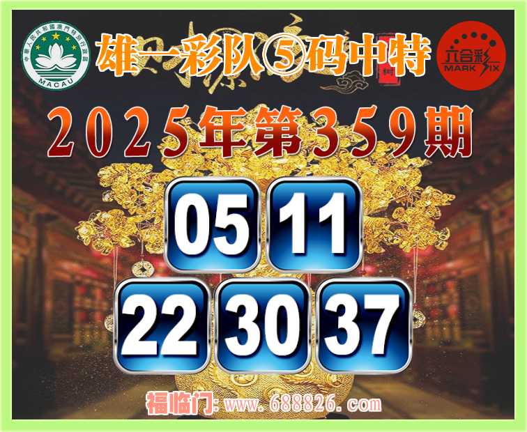 359期: ⌚『雄一彩队』⑤码中特⌚【05.11.22.30.37】开:11
