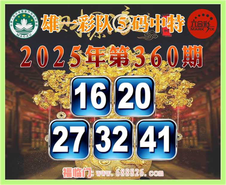 360期: ⌚『雄一彩队』⑤码中特⌚【16.20.27.32.41】开:41