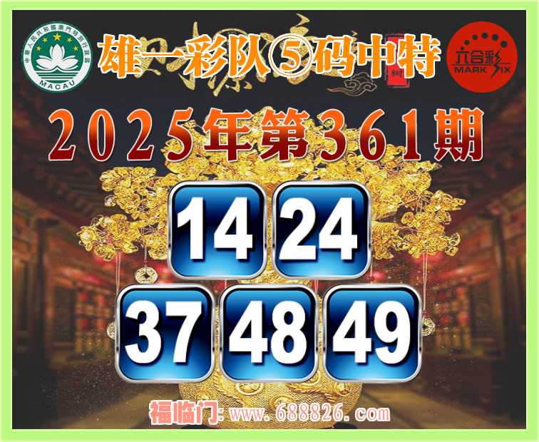 361期: ⌚『雄一彩队』⑤码中特⌚【14.24.37.48.49】开:24