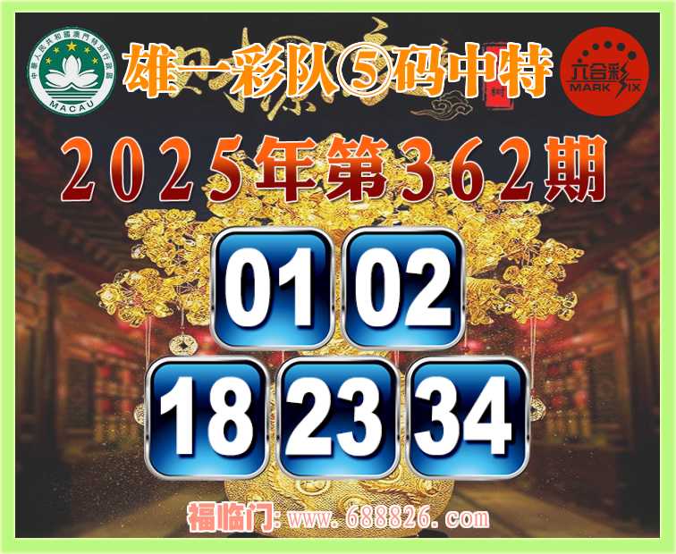 362期: ⌚『雄一彩队』⑤码中特⌚【01.02.18.23.34】开:23