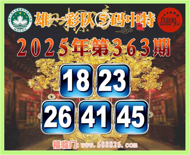 363期: ⌚『雄一彩队』⑤码中特⌚【18.23.26.41.45】开:26