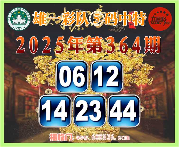 364期: ⌚『雄一彩队』⑤码中特⌚【06.12.14.23.44】开:12