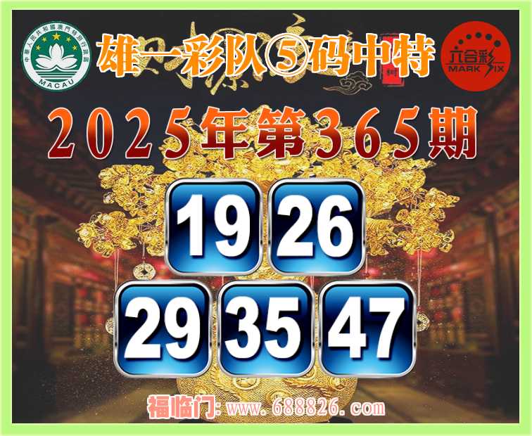365期: ⌚『雄一彩队』⑤码中特⌚【19.26.29.35.47】开:26