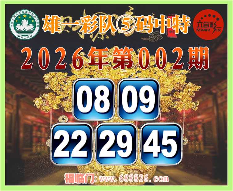 002期: ⌚『雄一彩队』⑤码中特⌚【08.09.22.29.45】开:22
