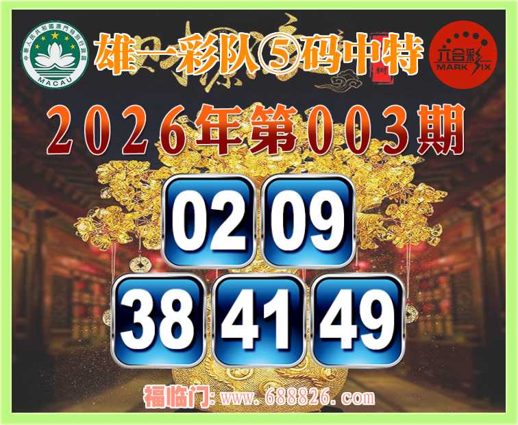 003期: ⌚『雄一彩队』⑤码中特⌚【02.09.38.41.49】开:09