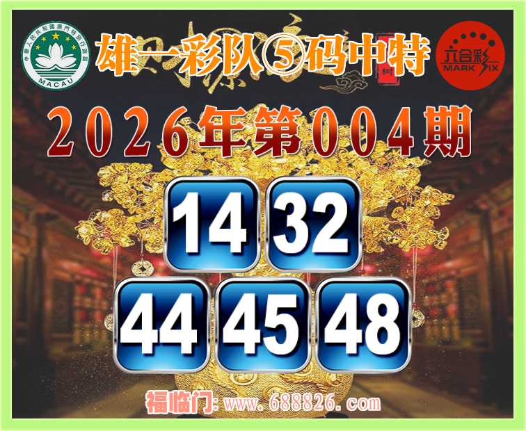 004期: ⌚『雄一彩队』⑤码中特⌚【14.32.44.45.48】开:45